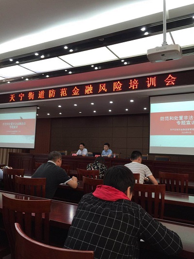 近期投資廣場應(yīng)天寧街道邀請參加“天寧街道防范金融風(fēng)險培訓(xùn)會”,參加培訓(xùn)會的有各社區(qū)(村)書記、經(jīng)濟(jì)專員以及天寧轄區(qū)內(nèi)所有商務(wù)樓宇的物業(yè)管理人員。