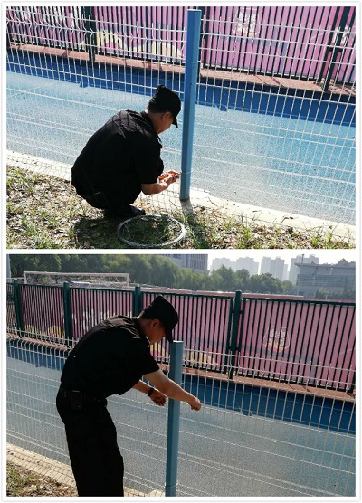 一天,項(xiàng)目部巡邏隊(duì)員張立財(cái)在巡邏中發(fā)現(xiàn)鐵絲網(wǎng)破損松動(dòng)了,在鐵絲網(wǎng)內(nèi)是剛剛新補(bǔ)種的小苗,于是他第一時(shí)間報(bào)告主管。保安隊(duì)長(zhǎng)匯報(bào)了甲方,同時(shí)讓保安對(duì)奧體中心有這種破損現(xiàn)象的鐵絲網(wǎng)進(jìn)行了統(tǒng)計(jì)。甲方讓物業(yè)協(xié)助購(gòu)買(mǎi)了鐵絲,知道我們的保安動(dòng)手能力很強(qiáng),就把維修鐵絲網(wǎng)的任務(wù)交給了項(xiàng)目部。張立財(cái)拿著鐵絲、老虎鉗等工具在現(xiàn)場(chǎng)修理了起來(lái)。由于經(jīng)常干活,他的動(dòng)作相當(dāng)熟練,鐵絲在他手里也仿佛變得格外柔軟順從,三下五除二就把圍網(wǎng)給箍緊扎牢了,圍網(wǎng)里新補(bǔ)種的小苗們也得到了及時(shí)的保護(hù)。