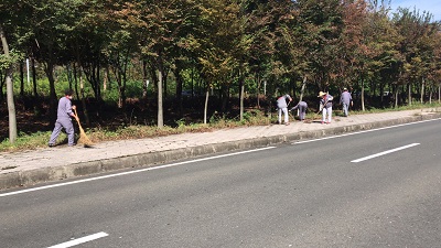 溧陽駕培中心科目三考場,城市大道兩側(cè)人行道雜草叢生,甚至長得比人都高,因平時考訓(xùn)期間,車輛、人員較多,不能進行清除工作,于是物業(yè)項目部安排保潔在十一節(jié)假期間進行清理雜草工作。
