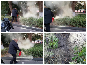 外圍停車壓力大,在此期間各個崗位人員履職盡職,有條不紊的指引車輛,就在16點46分時,白班隊長發(fā)現體育場南邊進口有疑似煙霧飄出來,他立即上前查看,同時在附近健身的市民也反映有火源。下一刻保安隊長就用對講機呼叫請求支援,項目副經理周軍接到呼叫后立馬從體育館拿著滅火器于16點48分趕至現場滅火,16點51分火源被熄滅。與此同時,項目副經理又安排隊員去裝水繼續(xù)撲滅零星的火星,防止復燃,直至17點所有復燃的隱患全部解除,事后項目副經理向場館進行工作匯報,同時對用掉的滅火器及時補充。