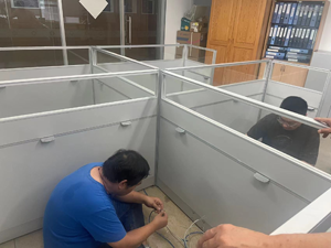 隨著一陣電話鈴聲響起,打破了投資廣場項目客服部辦公室的寂靜,“戴師傅,戴師傅,能不能幫忙收拾出一個工位!”秉著為業(yè)主全心全意服務(wù)的理念,戴師傅立即趕到現(xiàn)場一看,“哇塞,這工作量不是一點點大,一時半會弄不好。”但是甲方又催得急,戴師傅只能立馬叫上幾個技術(shù)過硬、工作負責(zé)的師傅們加班加點趕工。