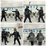 演練開始后,模擬工作期間有歹徒企圖強(qiáng)行進(jìn)入大樓,威脅員工安全,安保人員立刻阻攔,門衛(wèi)用對(duì)講機(jī)呼叫報(bào)告組長。組長及各組員迅速到達(dá)現(xiàn)場(3分鐘之內(nèi)),各組員手持器械。組長緊急下達(dá)命令,立即啟動(dòng)《反恐反暴應(yīng)急預(yù)案》。組長及時(shí)將附近員工疏散到安全地帶并撥打報(bào)警電話(110、120)。各組員第一時(shí)間使用鋼叉、盾牌、橡膠棒等將歹徒圍住。組長與歹徒交涉,周旋,聯(lián)手成功制服企圖入侵的歹徒,防止大樓員工受到傷害,隨后幾人把歹徒移交警察處置。