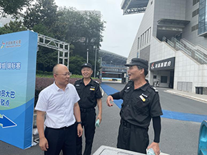 近日,公司總經(jīng)理張總親自來到奧體中心項(xiàng)目,深入一線,慰問在高溫下辛勤工作的員工們。在周經(jīng)理的陪同下,張總來到安保和保潔的工作區(qū)域,與員工們親切交談,了解他們的工作情況和身體狀況。