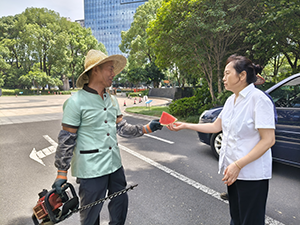 江蘇省各地高溫來襲,預(yù)警信號(hào)頻頻亮起。在這樣的盛夏,有一片綠蔭遮擋無疑是舒心的事。但在水務(wù)大廈項(xiàng)目部,有這樣一群人,他們每天與綠色相伴,呵護(hù)著城市的花草樹木,自己卻置身于炎炎烈日之下,用汗水澆灌綠蔭。