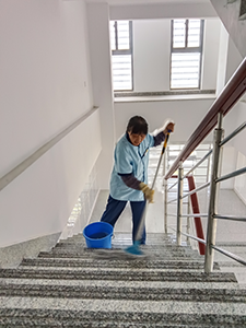 低溫中心項目部的保潔阿姨們在日常維護(hù)中,都會定期對扶梯進(jìn)行擦拭。冬季樓梯間寒風(fēng)呼嘯,夏季悶熱難耐。她們無懼寒冷和悶熱,掃、擦、拖,整個樓道在他們勤勞雙手的奮戰(zhàn)中,始終保持整潔明亮,一塵不染的環(huán)境。