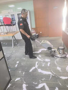 一樹一菩提,一沙一世界,生活的一切原本都是由細(xì)節(jié)造成的,而細(xì)節(jié)往往最容易被人忽視,殊不知這最不起眼的細(xì)節(jié)往往決定了事情的成敗,百分之一的失誤就會(huì)導(dǎo)致百分百的失敗。水務(wù)大廈項(xiàng)目部本著細(xì)節(jié)決定品質(zhì)的管理方針,為營造一個(gè)干凈舒適的辦公環(huán)境,在不影響甲方領(lǐng)導(dǎo)正常辦公的情況下,決定利用下班時(shí)間將甲方辦公室內(nèi)部地毯全部清洗一遍。收到通知后,參與此次清洗行動(dòng)的保安員、保安員毫無怨言,拿起工具說干就干。他們先是用大功率的吸塵器將有污染的地方進(jìn)行吸塵,再將清潔劑稀釋在地毯上全面噴灑,等待10-15分鐘后,污漬脫離纖維,再用洗地機(jī)抽洗,在洗地毯的同時(shí)用吸水機(jī)將已經(jīng)洗完的地毯吸干凈,讓地毯完全干透后才可以讓行人通過。地毯又重新恢復(fù)了光潔亮麗。這一項(xiàng)零打擾服務(wù)得到了甲方的贊揚(yáng)。