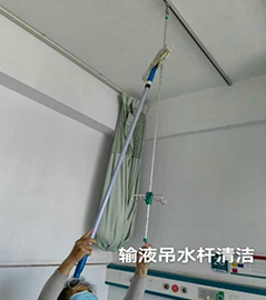 本周,項(xiàng)目經(jīng)理安排保潔阿姨們對病區(qū)樓層上的輸液吊水桿進(jìn)行清潔,每個(gè)樓層的保潔阿姨負(fù)責(zé)自己區(qū)域的吊水桿。他們首先用毛套沾上清潔水將桿子從上到下清潔,再用濕毛巾進(jìn)行擦拭,最后再用干毛巾將桿子擦干,確保吊水桿上無污垢。