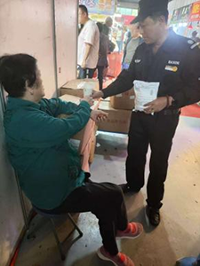 下午2時左右,正當(dāng)展會進(jìn)入高潮之際,一位阿姨突然感到頭暈?zāi)垦,臉色蒼白。這一幕恰好被巡邏至此的保安人員張立財敏銳捕捉。他迅速行動,第一時間為阿姨找來椅子,讓她得以安穩(wěn)坐下休息,同時,緊急聯(lián)系展會現(xiàn)場的醫(yī)護(hù)人員前來援助。