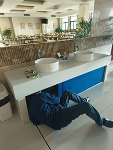 近期,一樓食堂洗手池下水道堵塞,導(dǎo)致難以排出污水,給大家?guī)順O大的不便。水管的堵塞在洗手池下方,為維修工作增加了難度,維修師傅趴在地上,經(jīng)過一番周折,終于疏通。像這樣的事情,經(jīng)常會發(fā)生。遇到院內(nèi)突發(fā)情況需要處理,他都是第一時間趕到現(xiàn)場,負責協(xié)助和處理。每天他都在默默無聞的做著檢修工作,每日對設(shè)備進行巡檢,做好日常的維修維護,確保各個設(shè)備正常運行。