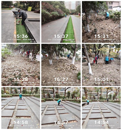 因受多風(fēng)氣候影響,主干道落葉明顯大幅度增多,落葉清掃不及時(shí)不僅影響綠化環(huán)境,還潛伏火災(zāi)安全隱患。冬季樹葉多四散分布,道路、綠化區(qū)藏匿的落葉清掃難度加大,保潔根據(jù)“路段不同、落葉數(shù)量不同”的特點(diǎn),增加人員配置,分段分區(qū)全范圍對道路兩側(cè)、綠化區(qū)進(jìn)行大面積清掃。針對較難處理的邊角縫和衛(wèi)生死角,保潔采用人工和機(jī)械化方式相結(jié)合進(jìn)行清掃處理,絕不落下任何一處角落。隨后,工作人員將清掃完的落葉裝袋打包統(tǒng)一收集裝車清運(yùn),確保落葉隨落隨清。