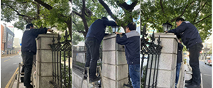 銹跡斑斑,燈光昏暗,投資廣場使用了將近20年的圍墻燈因為年久失修、有的路線已經(jīng)老化損壞而出現(xiàn)故障,影響大廈員工傍晚后的出行安全。為了節(jié)能降耗,保證投資廣場設施設備完好率達到百分之百,項目部決定對所有外圍路燈進行維修。