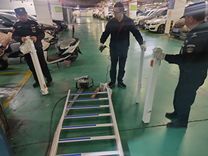 為高效且低成本地解決這一難題,保安主管華春龍充分發(fā)揮創(chuàng)新思維與資源利用能力,決定利用舊護欄對該三角空間進行封閉改造。在施工過程中,維修班工作人員協(xié)助進行了精心測量、安裝,確保舊護欄的重新搭建既牢固又美觀。同時,為進一步杜絕此類不文明現(xiàn)象的發(fā)生,安保部在封閉區(qū)域顯眼位置附上了 “禁止隨地大小便” 的宣傳語,并配以醒目的圖案標識,以起到警示作用。