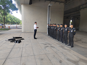 在模擬演練中,安保員分組進(jìn)行實(shí)戰(zhàn)對(duì)抗。面對(duì) “持械暴徒” 場(chǎng)景,安保員迅速反應(yīng),利用盾牌格擋、鋼叉限制、警棍威懾,默契配合完成 “處置”。整個(gè)過(guò)程緊張有序,有效檢驗(yàn)了培訓(xùn)效果,提升了安保員應(yīng)對(duì)突發(fā)恐怖暴力事件的協(xié)同作戰(zhàn)能力 。