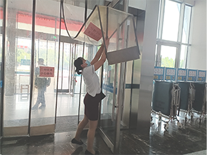 盛夏伊始,空調(diào)開(kāi)放期間,項(xiàng)目部便分派區(qū)域負(fù)責(zé)人至各部門(mén)加強(qiáng)巡查院區(qū)內(nèi)各處有無(wú)冷氣外泄,當(dāng)發(fā)現(xiàn)有“外冒”情況時(shí)積極干預(yù)處理。門(mén)診一樓大廳是重點(diǎn)關(guān)注區(qū)域,大廳空間大,通道門(mén)多,電梯員孫紅總是能發(fā)現(xiàn)冷氣外泄的現(xiàn)象,她瘦小的身體拉扯著厚重的門(mén)簾一點(diǎn)一點(diǎn)的將門(mén)簾拉了下來(lái),冷氣終于不再外冒。