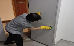 處理過程中,朱阿姨展現(xiàn)出非凡的耐心與專業(yè)素養(yǎng)。她反復(fù)調(diào)整清潔劑配比,采用物理擦拭與化學(xué)分解相結(jié)合的方式,對門框縫隙、閉門器等關(guān)鍵部位進(jìn)行深度護(hù)理。為避免清潔液流入防火密封條,連續(xù)奮戰(zhàn)數(shù)小時(shí)直至污漬徹底清除。期間婉拒同事?lián)Q班提議,堅(jiān)持“問題不過夜”的服務(wù)準(zhǔn)則。